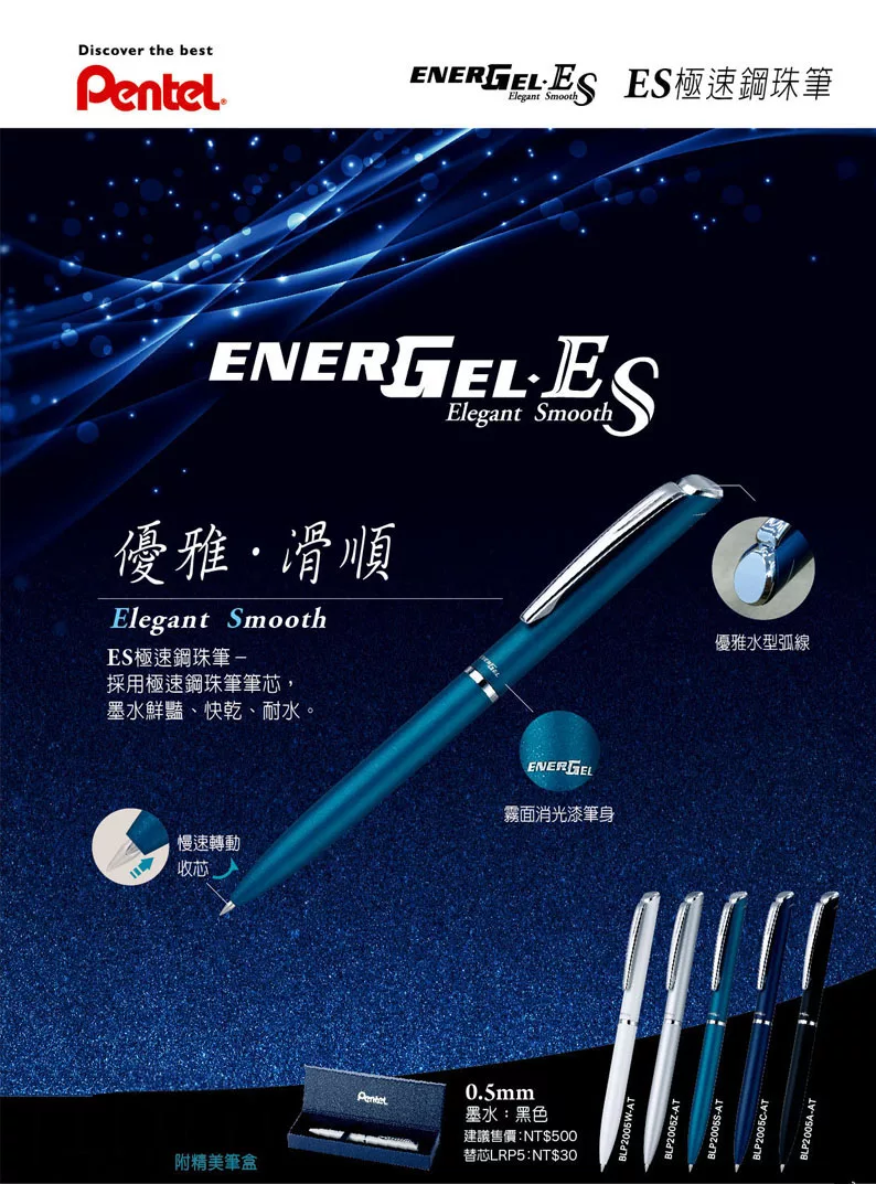 PENTEL ES極速高級鋼珠筆 白桿![]()